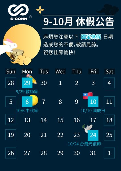 9-10月 休假公告